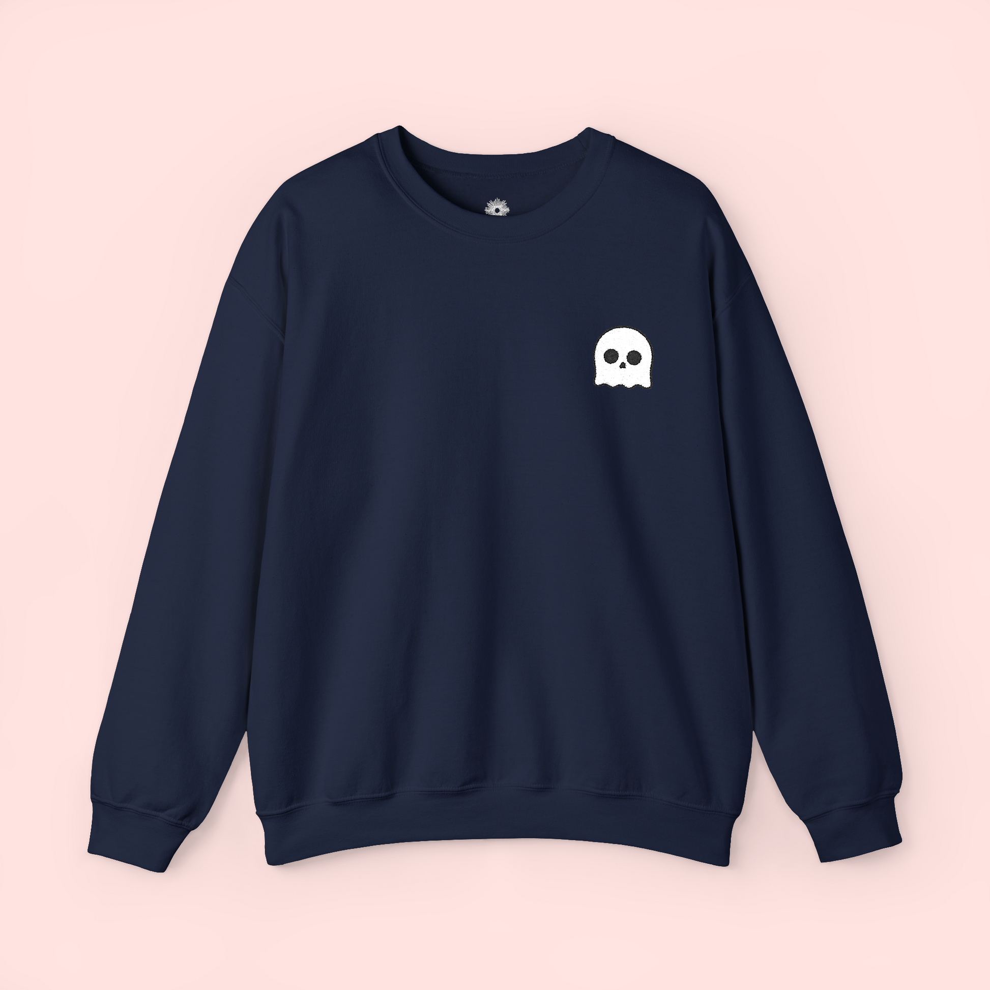 Upgrade your wardrobe with this Halloween inspired sweatshirt featuring a ghost design embroidery on the left chest. The trendy colors and unisex design make it a versatile addition to any closet. Perfect for those who love all things Halloween, this sweatshirt is ideal for casual wear or can be dressed up for a unique and eye-catching look. Great for the colder months or as a cozy layering piece, this heavy blend sweatshirt offers both style and comfort.
