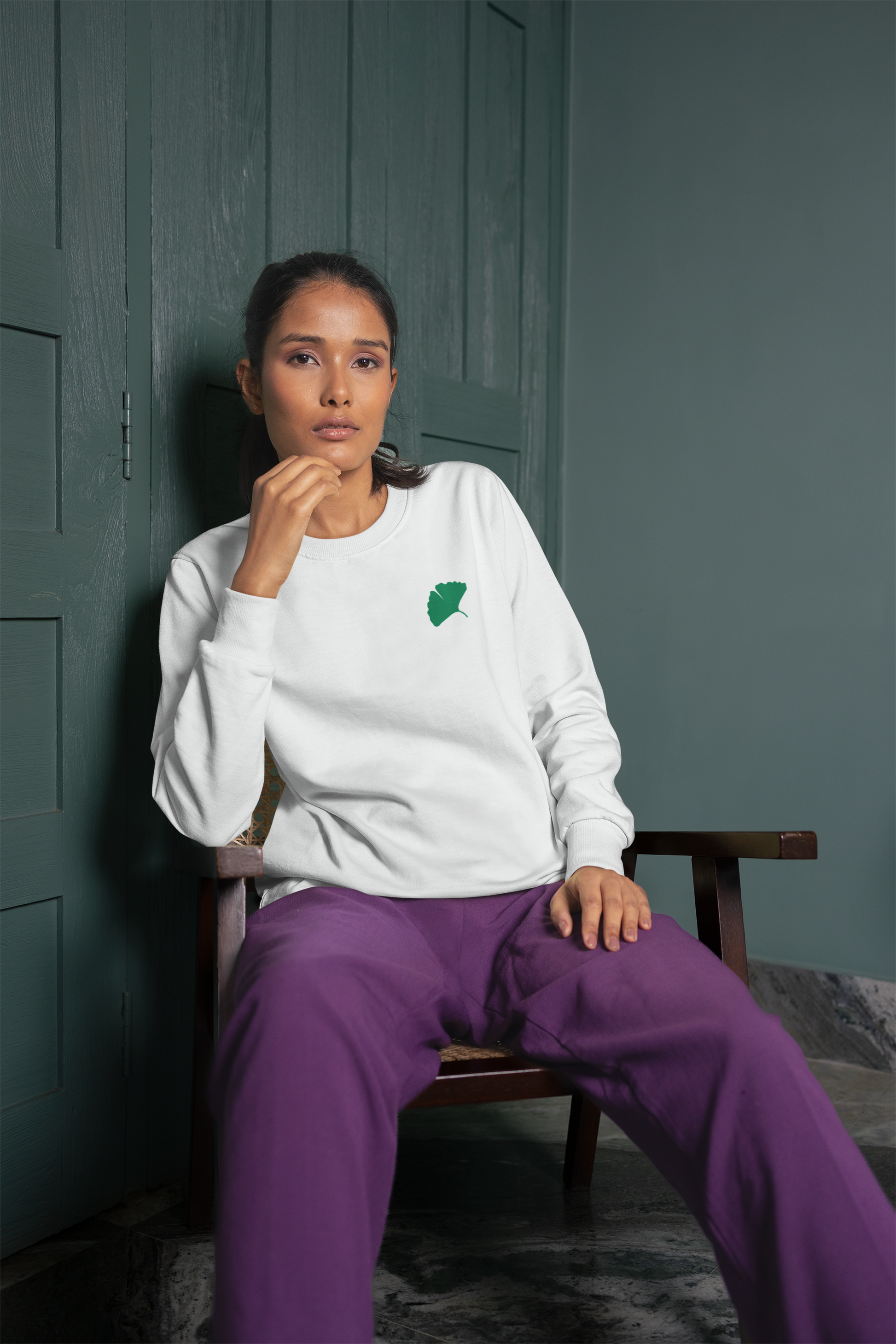Embroidered Gingko Leaf Crewneck Sweatshirt